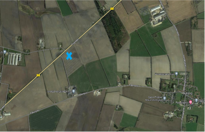 Sted: Ved Harsø Maskiner A/S, Fåborgvej 5, 6818 Årre – marken er synlig fra Tingvejen
