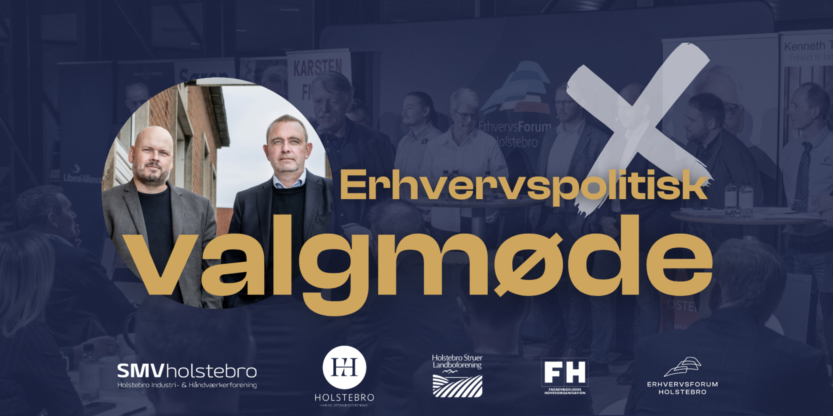 På vegne af erhvervsorganisationerne i Holstebro Kommune inviterer vi til årets største valgmøde, vi sætter den erhvervspolitiske dagsorden for kommunalvalget den 18. november.