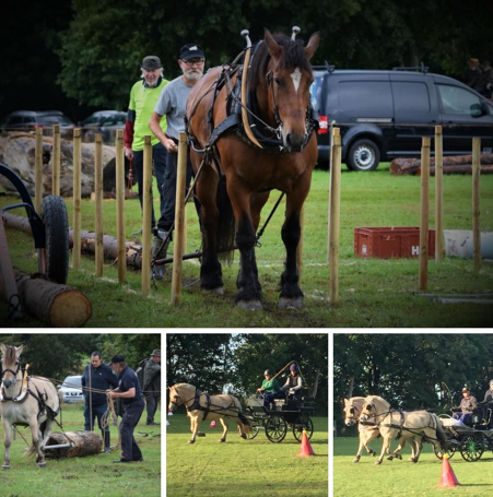 Og der bliver vist hestekræfter, når hestene trækker afsted med store træstammer.