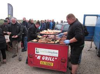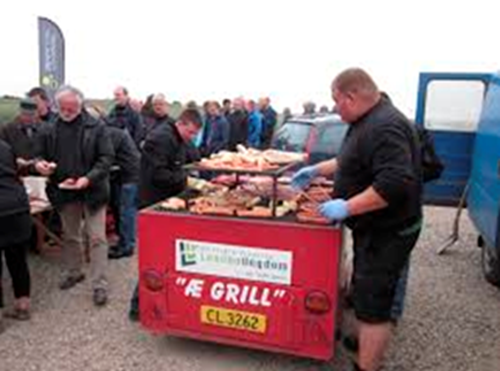 Vi mødes ved maskinhuset, hvor der serveres fra grillen