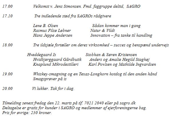 Pris for deltagelse: Deltagelse er gratis for kunder i SAGRO og medlemmer af ejerforeningerne bag. Pris for øvrige: 250 kroner.