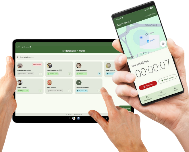 Kontakt os, hvis du vil have vurderet, om jeres tidsregistrering kan holde – også når det bliver alvor.