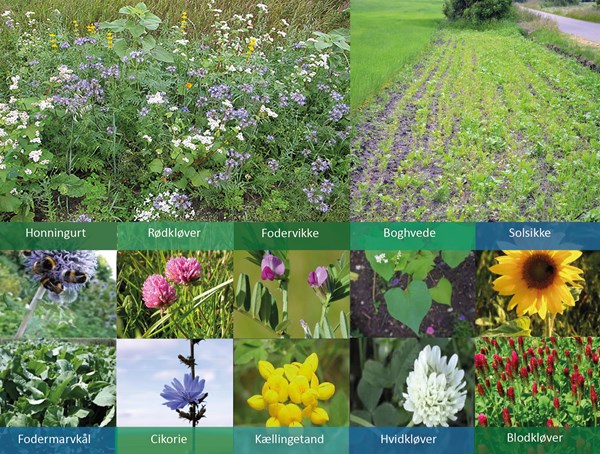 Frøblandingen består af både ét og flerårige urter som honningurt, solsikke, rødkløver og cikorie.