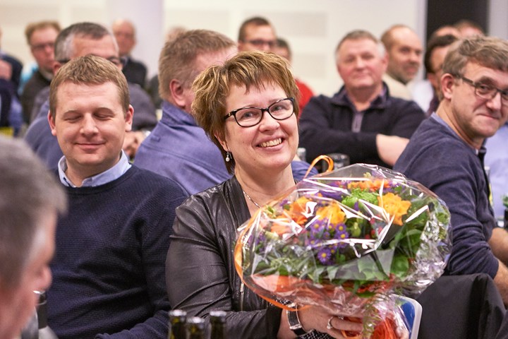 Til Jytte, Claus Christensens kone, var der blomster fra landboforeningen med tak for lån af ægtemanden i mange år.