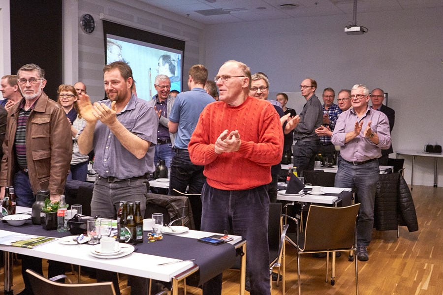 Salen kvitterede for Claus Christensens mangeårige indsats med stående klapsalver.