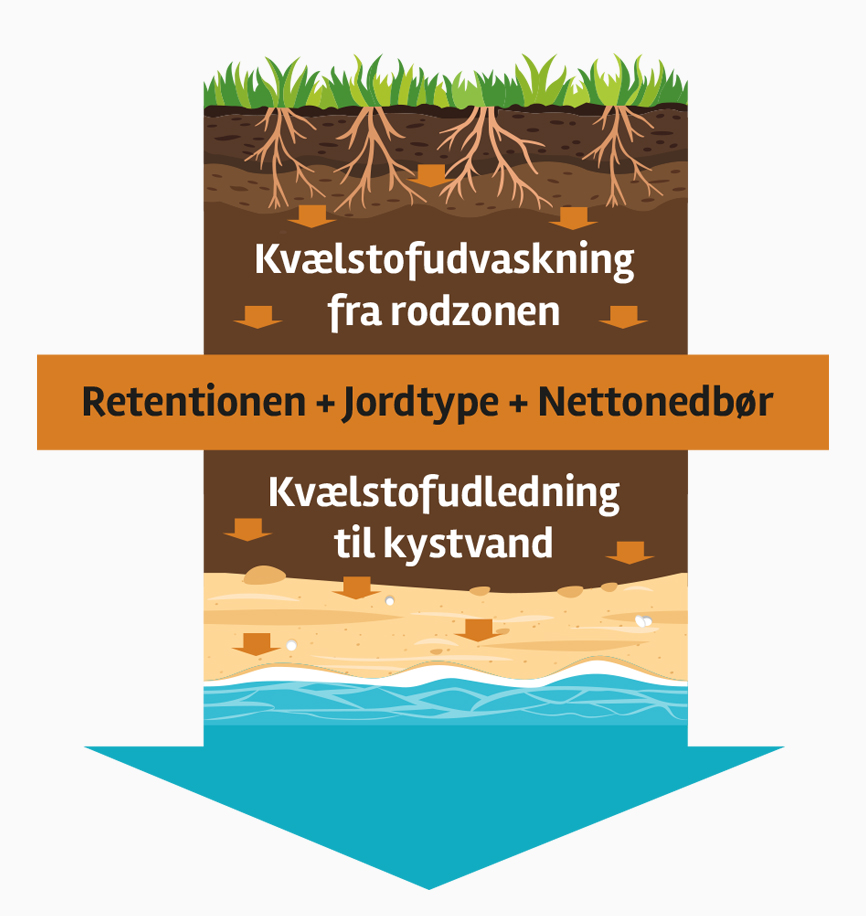 Retentionen er kernebegrebet i alt det her, og ordet dækker over, hvor god jorden er til at holde på kvælstoffet. Hvor meget kvælstof, jorden tilbageholder fra én meters dybde frem til kystvandet – for at være mere præcis – og jo højere retention, desto bedre.
