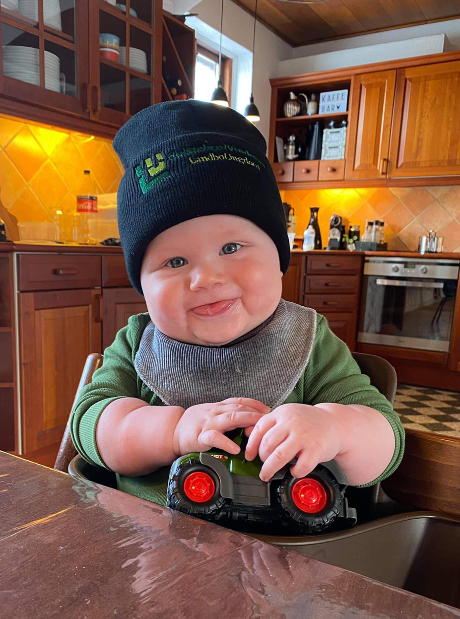 Parrets søn Vilhelm er vist allerede klar til et job i landbruget, og har været med far på tur i traktoren flere gange. Til sommer bliver lille Vilhelm storebror.