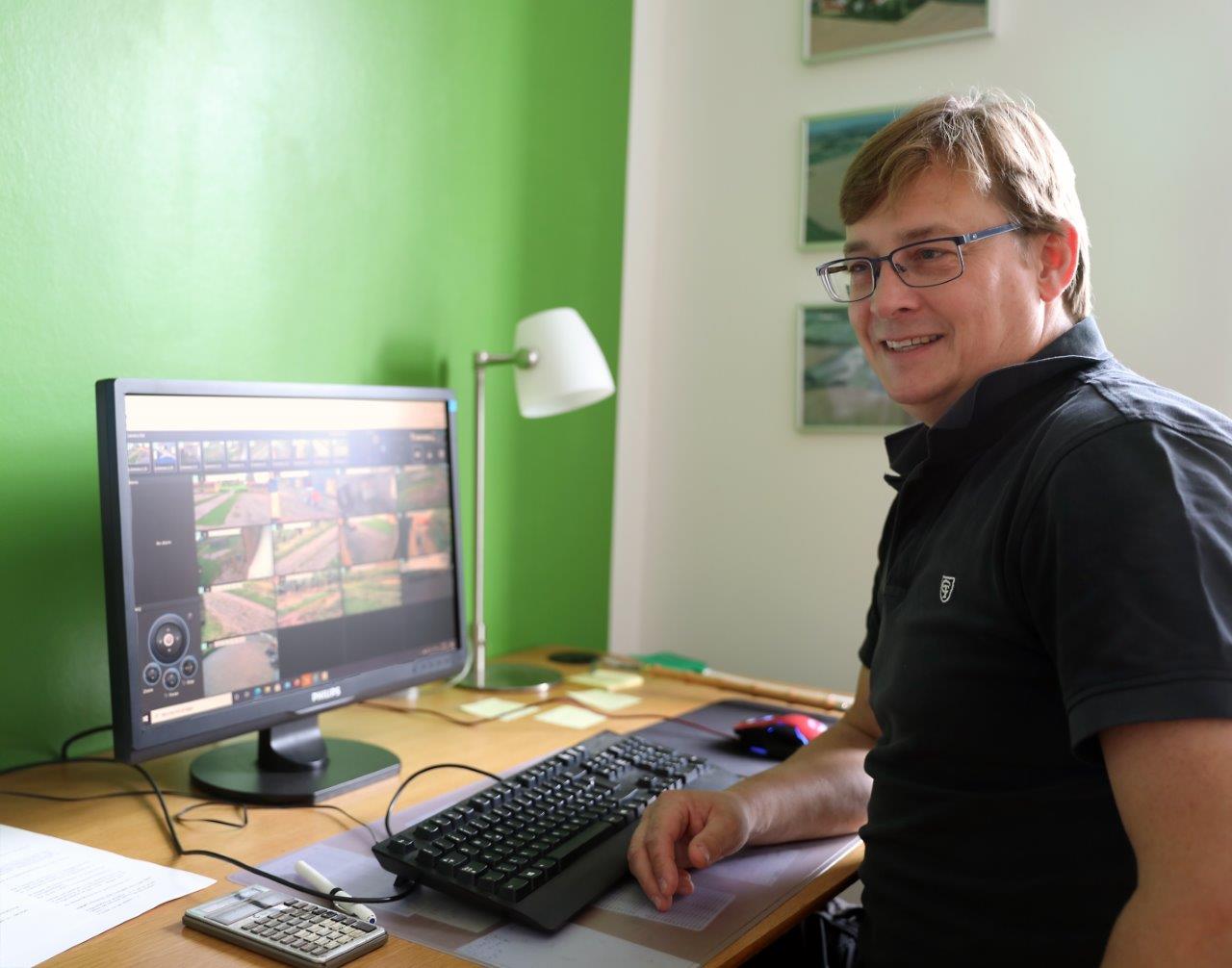 Carsten Nørgaard kan se indholdet i de ni kameraer på både PC og telefon. Systemet kan opgraderes til i alt 32 kameraer, hvis det er nødvendigt.