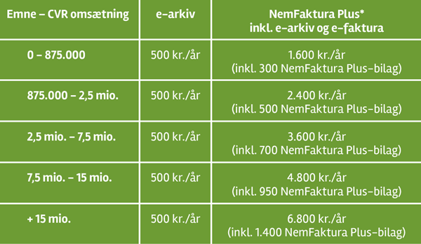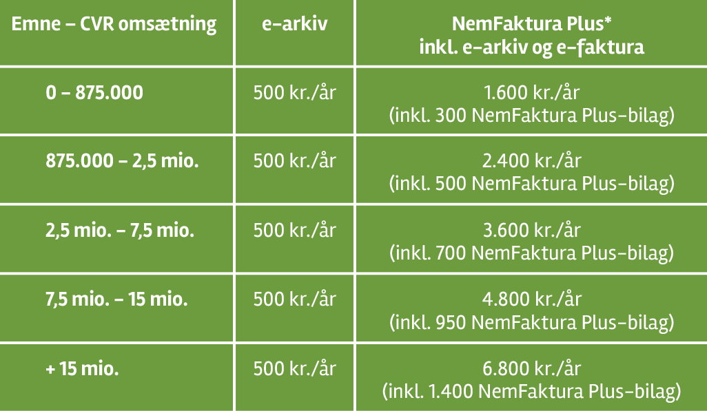 * Bilag udover nævnte antal opkræves 3 kr. pr. bilag