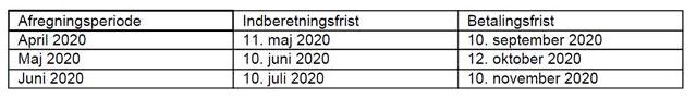 Betalingsfrister for indeholdt A-skat og AM-bidrag forlænges for 3 månedlige rater (betalinger for april, maj og juni) med 4 måneder.