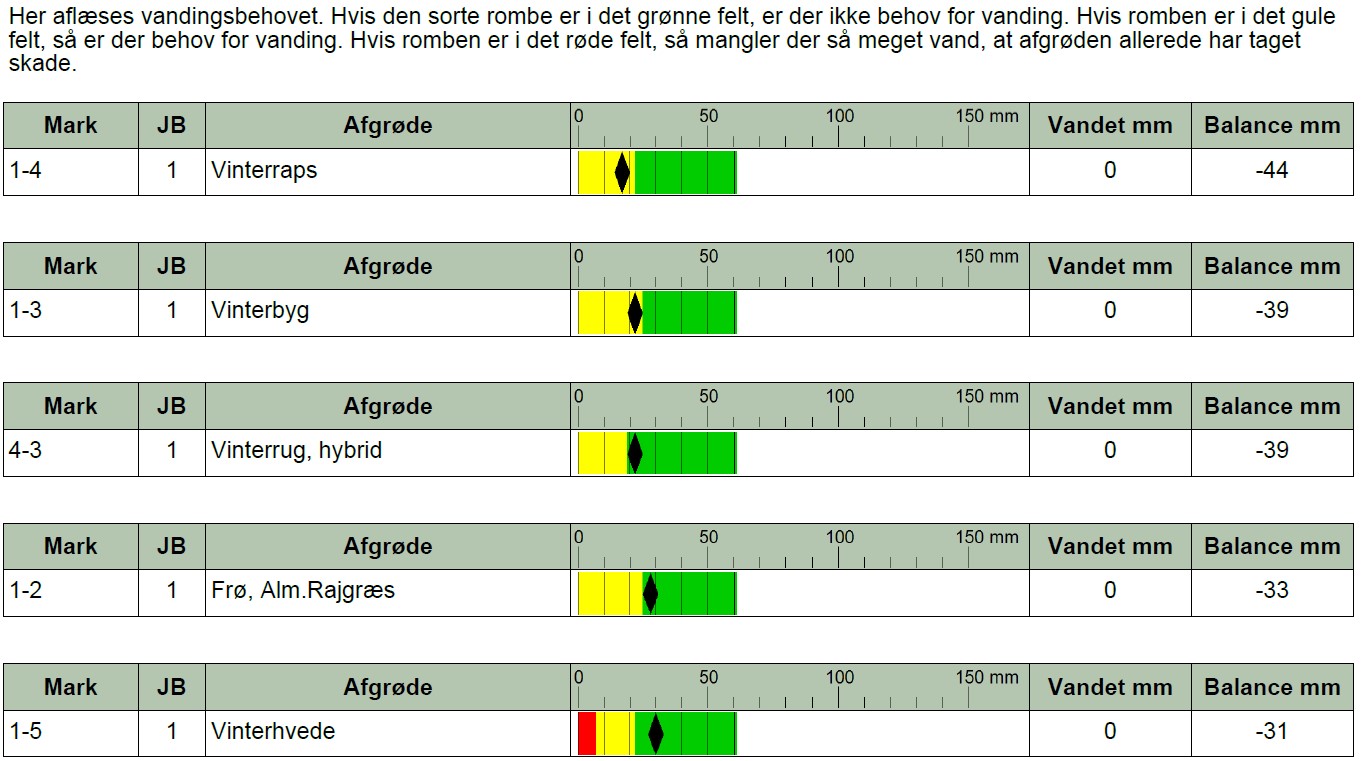 - Så når jeg laver en simulering pr. 1. maj, så er vandunderskuddet hele 55 mm i vinterraps, og romben (se billedet øverst, red.) er pludselig langt inde i det røde felt. Derfor er det nu, man skal finde vandingsmaskinerne frem.