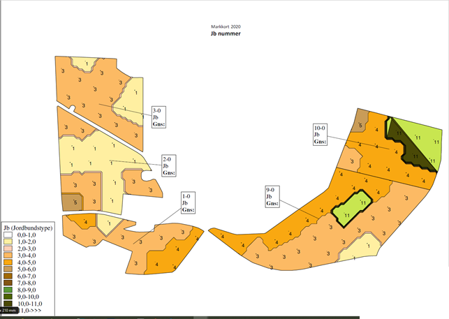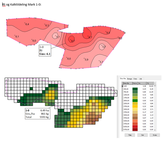 Fig 2. Herunder. Eksempel mark 1-0 SAGRO GPS-kort med Rt og kalktildeling.