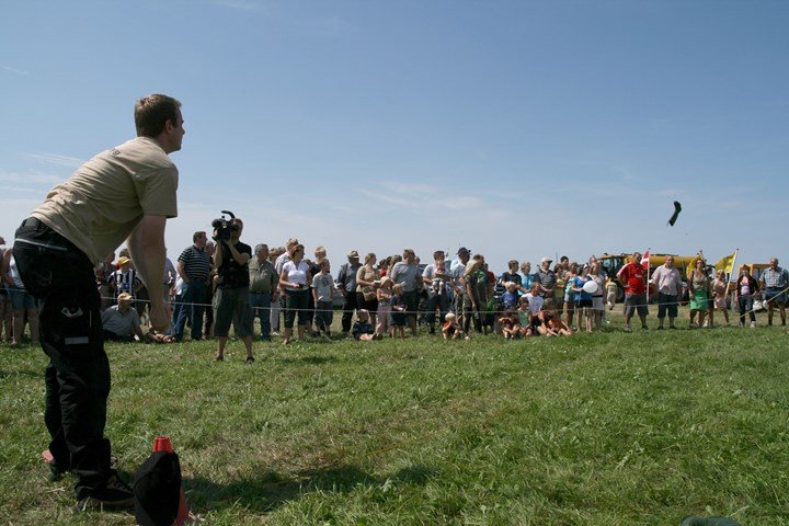 - Ved gummistøvlekast føres gummistøvlen mellem benene og hen over egen ryg. Ikke nogen let øvelse, så man bør allerede nu gå i skarp træning, hvis man ønsker at deltage i årets konkurrence, siger Kaj Abrahamsen.