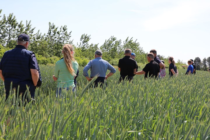 Efter frokost gik turen til Ytteborgs nærliggende forsøgsarealer, hvor der i et år er blevet lavet forsøg med biokul i en mark med rug.