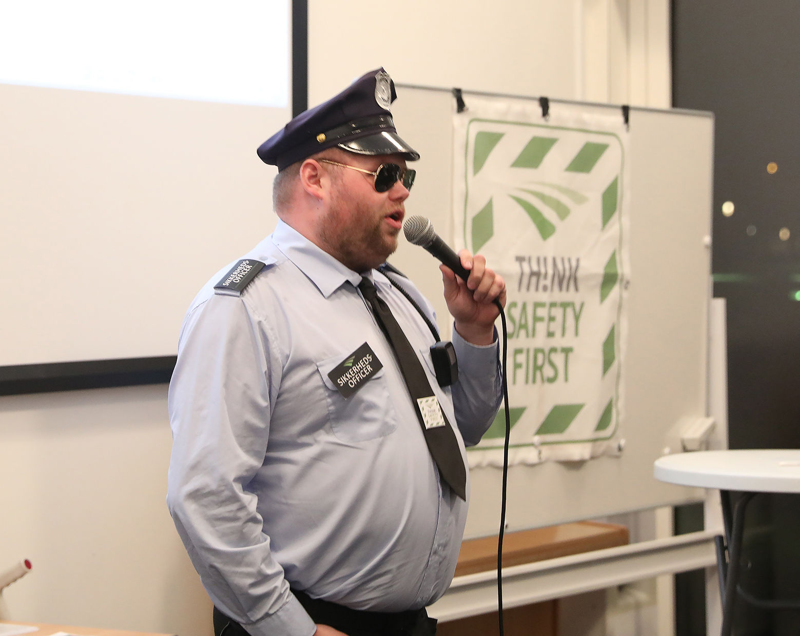 Aftenen bød også på noget, der kunne lette stemningen, da Thomas Birkedahl, der har rollen som SAGROs ”sikkerhedsofficer”, underholdt med en rap-tekst om sikkerhed.