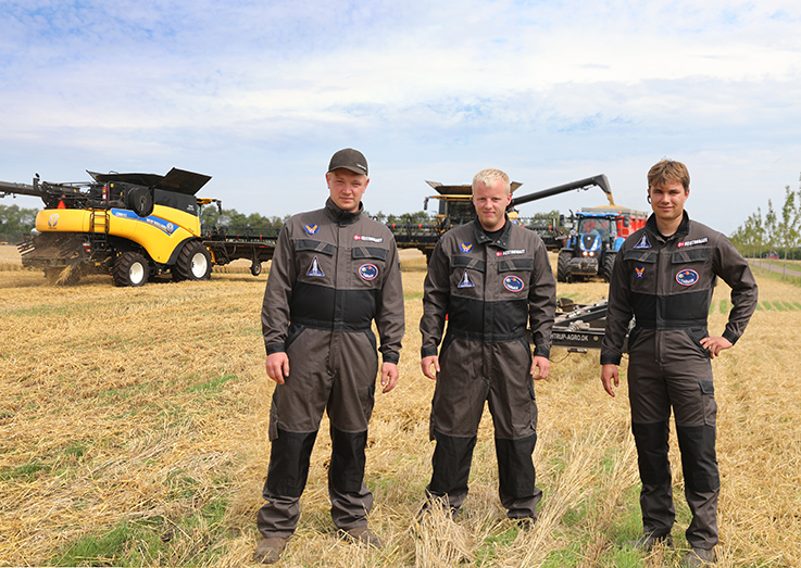 Til missionen var vi i marken med maskinstationen Brdr. Rasmussen fra Kibæk. Virksomheden, som også driver entreprenørvirksomhed, er drevet af de 3 brødre Tækker, Jens Thomas og Mads Rasmussen. Alle maskinstationens fire New Holland CR 9.90 mejetærskere har travlt for tiden i det gode høstvejr.