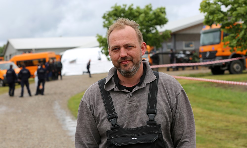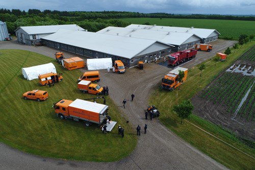 - Hvis vi kan gøre regeringer i andre lande trygge ved dansk fødevareproduktion, kan det betyde milliarder for dansk eksport, siger veterinærchef Maren Holm Johansen, der denne dag har sat kontor op i et maskinhus sammen med omkring 50 uniformerede beredskabsfolk, politifolk og kolleger fra fødevarestyrelsen.