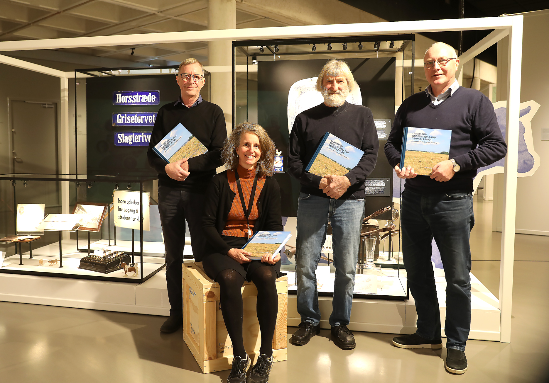 Fra højre formand for Holstebro-Struer Landboforening, Kristian Gade, forfatter og historiker Søren Poulsen, museumsdirektør Ingeborg Svennevig og Alan Lunde, ligeledes fra landboforeningen.