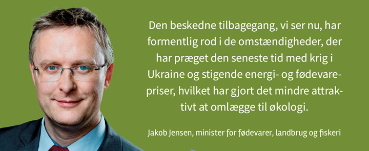 - Den beskedne tilbagegang, vi ser nu, har formentlig rod i de omstændigheder, der har præget den seneste tid med krig i Ukraine og stigende energi- og fødevarepriser, hvilket har gjort det mindre attraktivt at omlægge til økologi, lyder det i et skriftligt svar til Grobund fra minister for fødevarer, landbrug og fiskeri, Jacob Jensen (V).