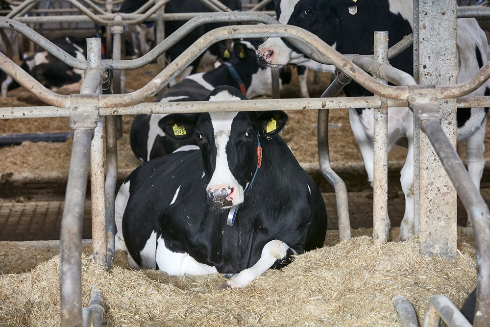 Køerne ligger i senge med god plads og snittet halm og kalk som underlag.