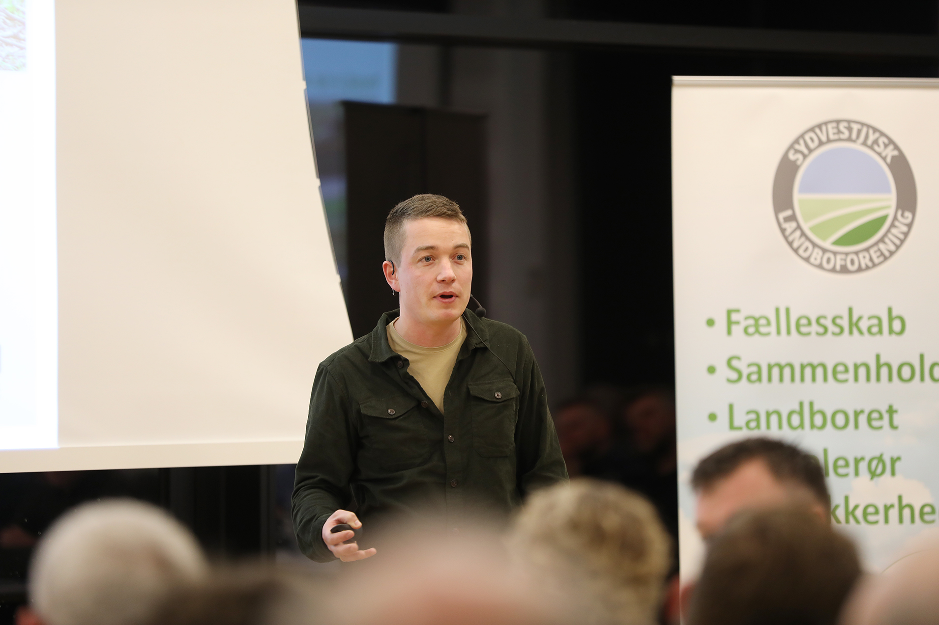 Aftenen startede dog med fagligt input, og derfor talte naturrådgiver Rasmus Filsø Løbner om, hvordan man i SAGRO arbejder for at hjælpe de mange landmænd, som hvert år oplever tab for mere end 100.000 kr. på grund af f.eks. krondyr eller bramgæs.