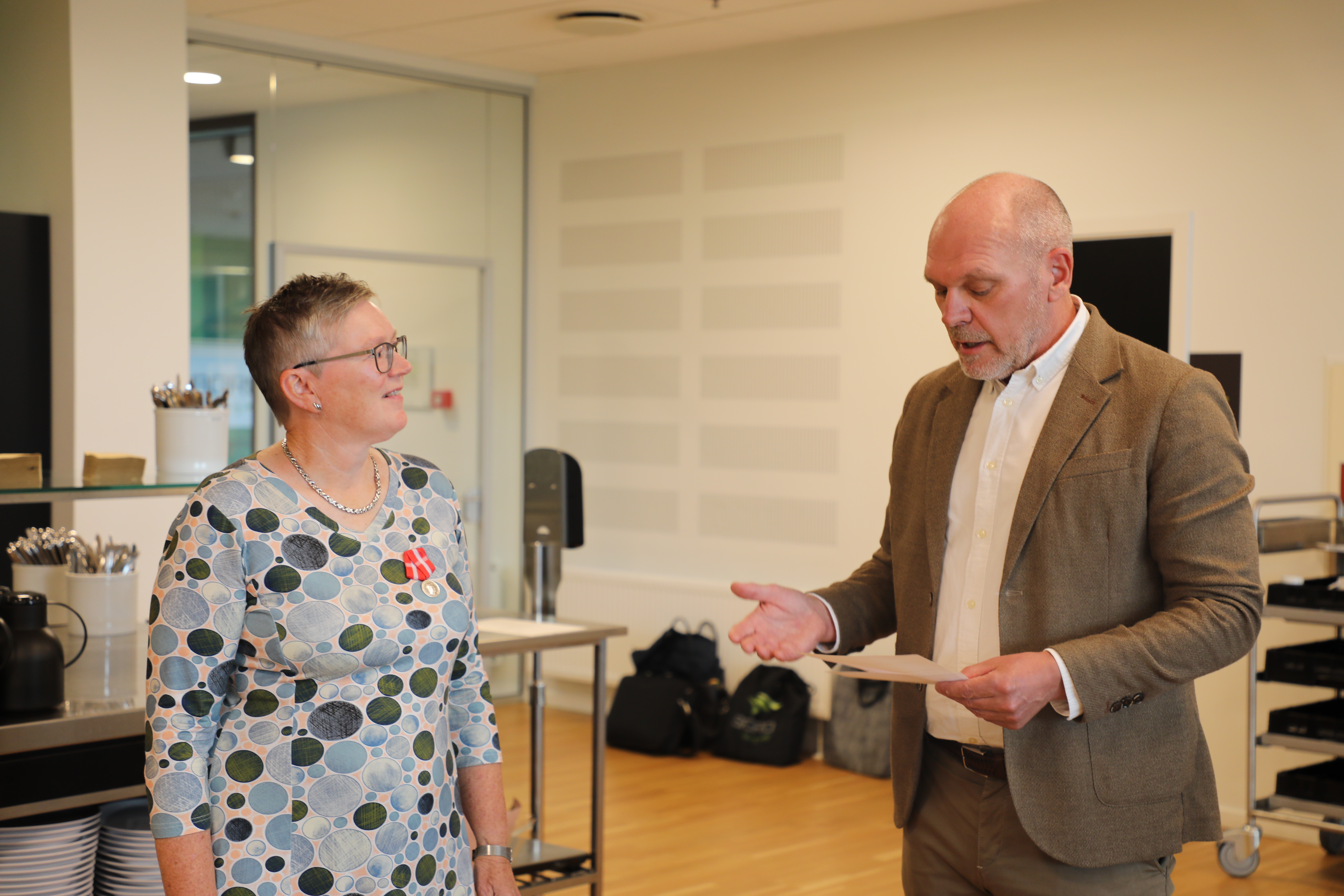 - Der er SAGRO-medarbejdere før dig, der har fået medaljen, men denne her er historisk. Nu er det nemlig ikke en dronning men en konge, du kan komme i audiens hos. Det har vi ikke prøvet før, sagde Torben Jensen bland andet i sin tale til Kirsten Gorm Pedersen.