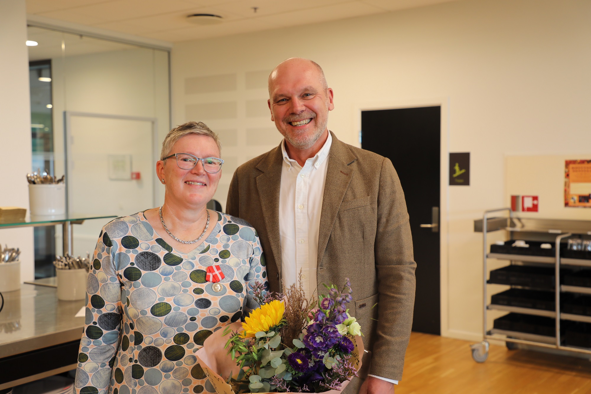 Hun valgte i januar i år at gå på pension efter 43 års ansættelse, og hendes chef Torben Lillegaard Nielsen indstillede hende til Den Kongelige Belønningsmedalje, og den har hun nu fået overrakt af SAGROs adm. direktør Torben Jensen.