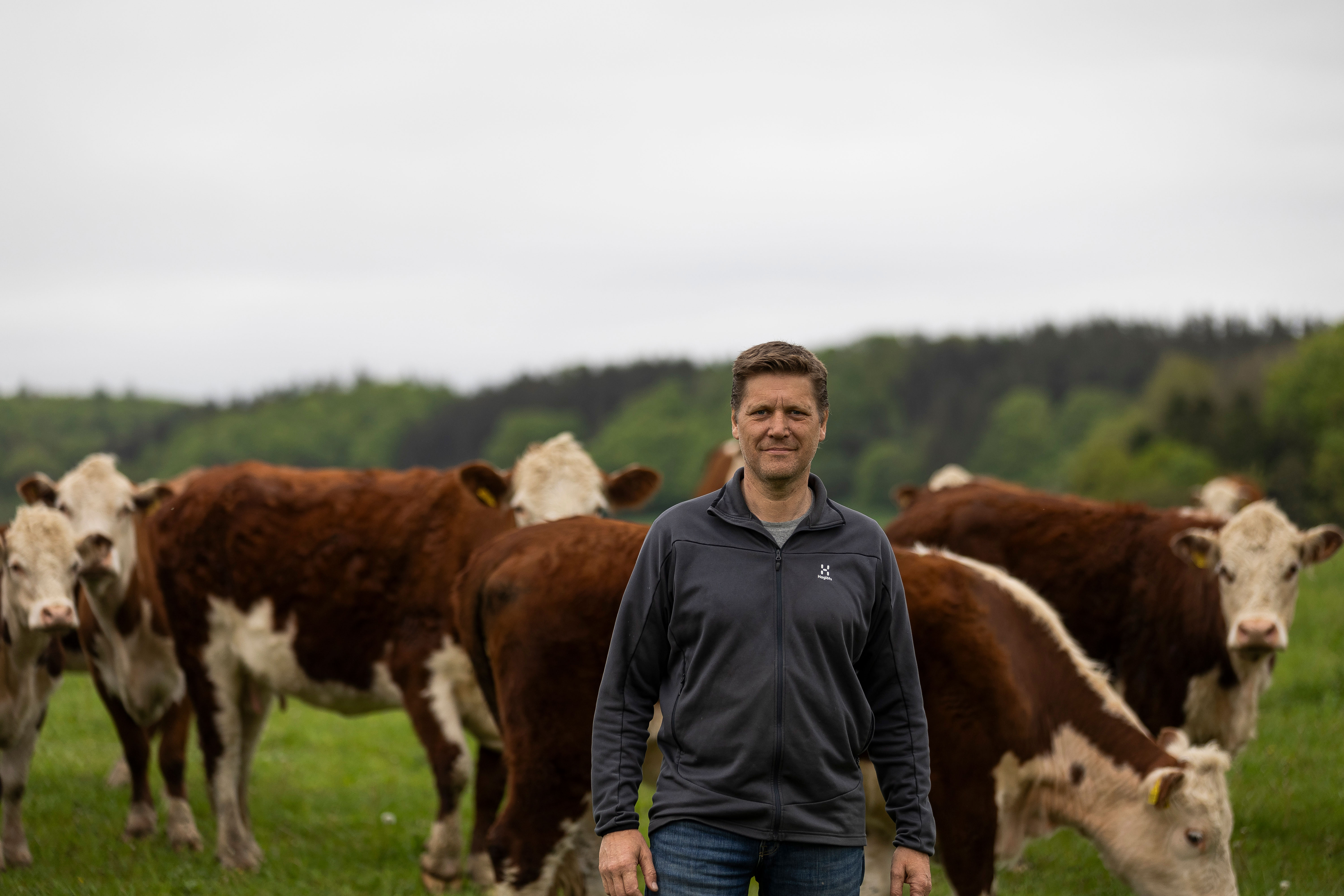 På Eskelyst i den smukke Vejle Ådal har Michael Kjerkegaard sit virke og livsværk. Her råder han over 300 hektar enge og naturarealer, som holder 250 herefordkreaturer og 150 moderfår ved godt huld. Han er økolog, og så driver han sit landbrug med naturpleje for øje og ud fra holistiske principper. Han har formået at skabe sig en sund forretning og et robust produktionssystem – og så har han argumenter for biodiversitet og kulstoflagring, som selv de argeste hadere af dansk landbrug må lytte til.