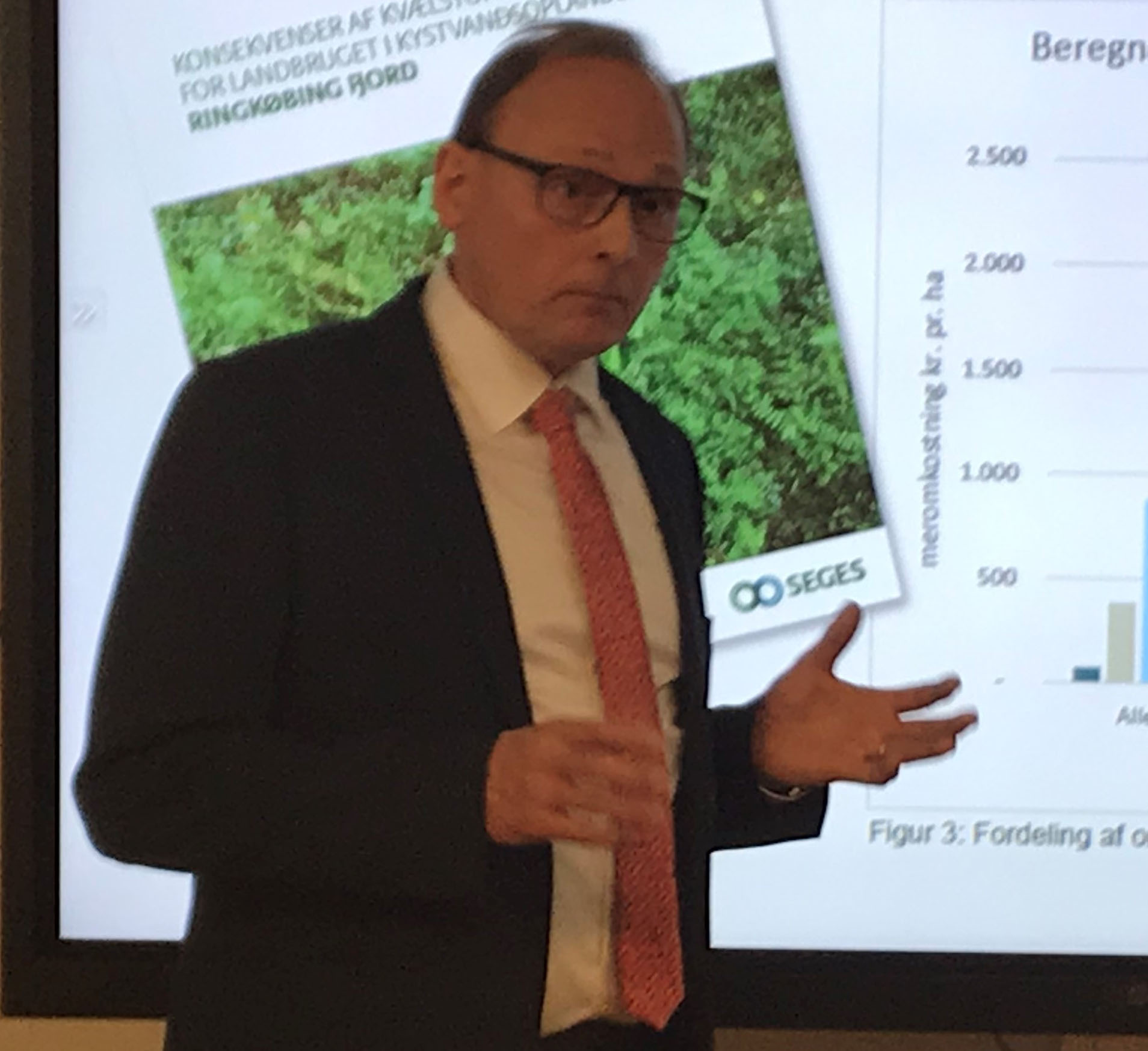 I oplandet til Ringkøbing Fjord skal der ske en reduktion på ca. 1.000 tons kvælstof pr. år - det vil omsat i kroner betyde en reduktion i indtjeningen på 1.458 kr. pr. ha.