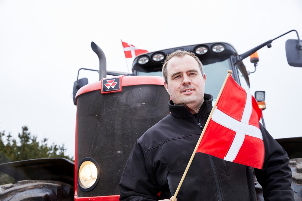Flagene på traktoren sender en hilsen til alle de danskere, der lever med begrænsninger i deres hverdag lige nu. Og så skal flagene vise, at landmænd er glade for at have friheden til at passe deres arbejde.