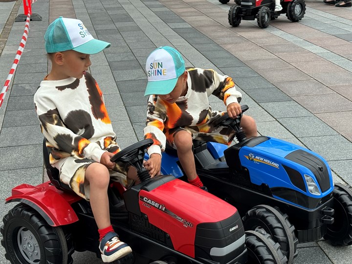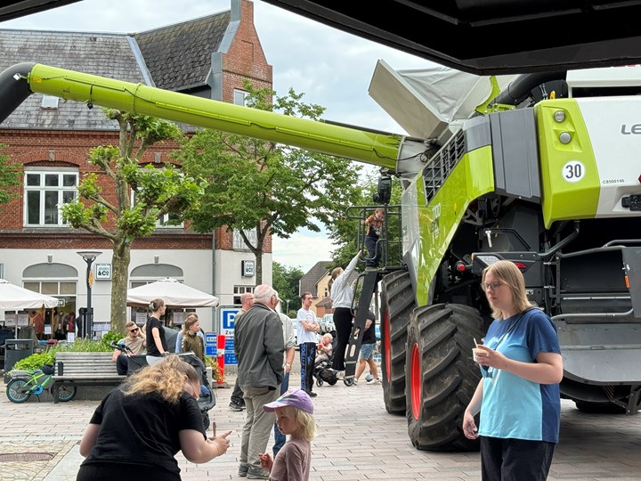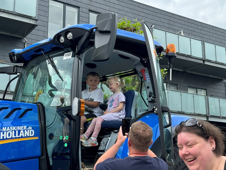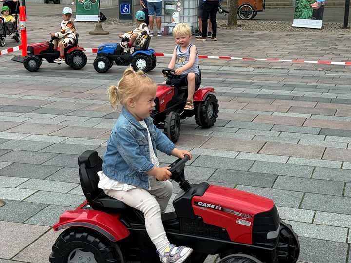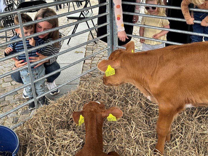 Og alt imens der var et væld af glade mennesker og summen på torvet, blev der solgt isvafler, børnene kunne klappe kalve, se en traktor og en mejetærsker, køre pedaltraktor, finde karameller i korncontaineren og hoppe afsted på et af de mange hoppedyr.