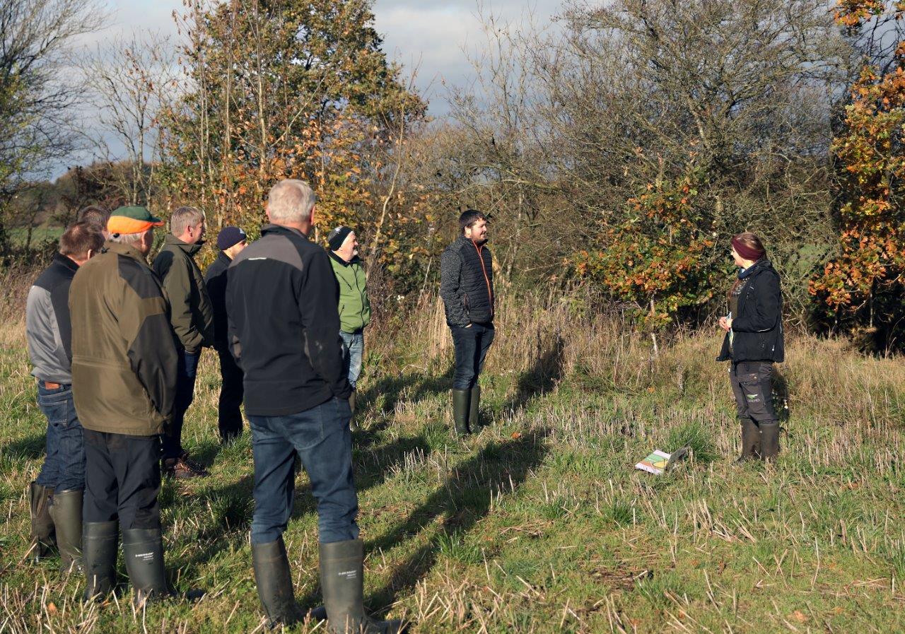 En flok lokale landmænd og naturinteresserede deltog i et besøg hos økologisk landmand Flemming Julsgaard, Brande, da SAGRO torsdag præsenterede hans ejendom med naturbrillerne på.