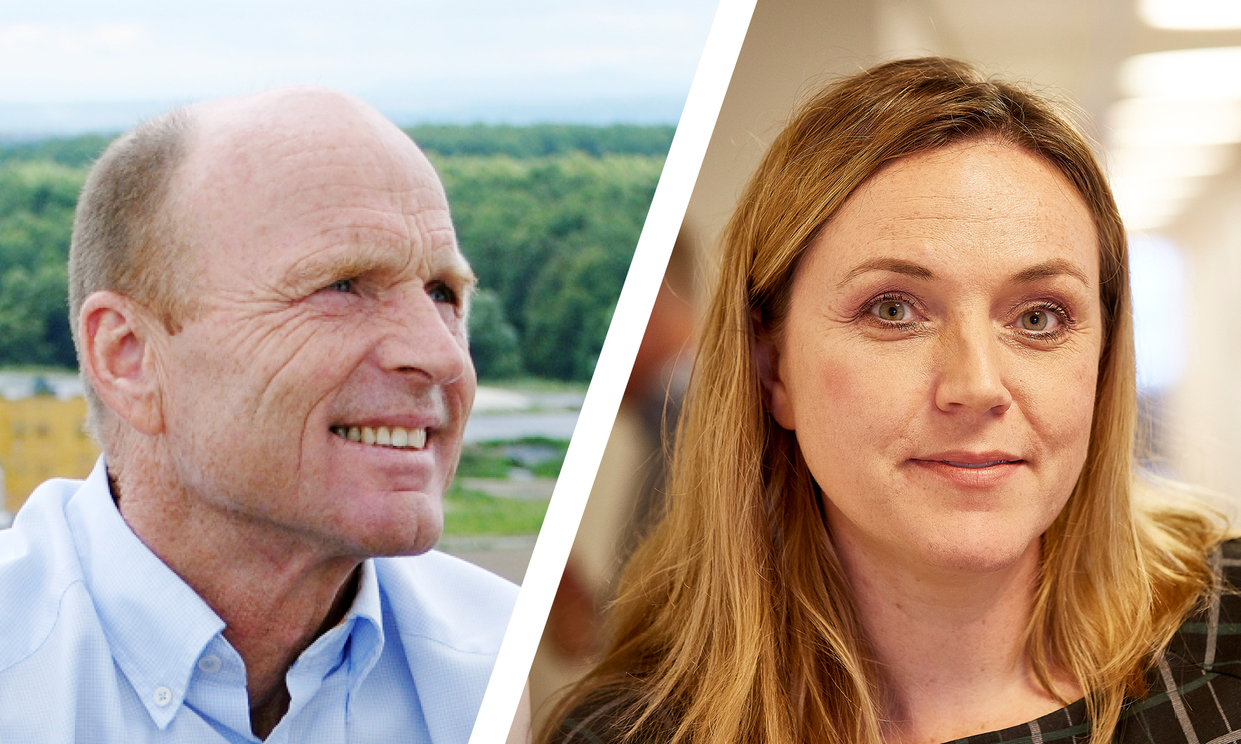Tom Axelgaard diskuterer fødevareproduktion mandag den 25. september med direktør for Landbrug & Fødevarer, Karen Hækkerup.