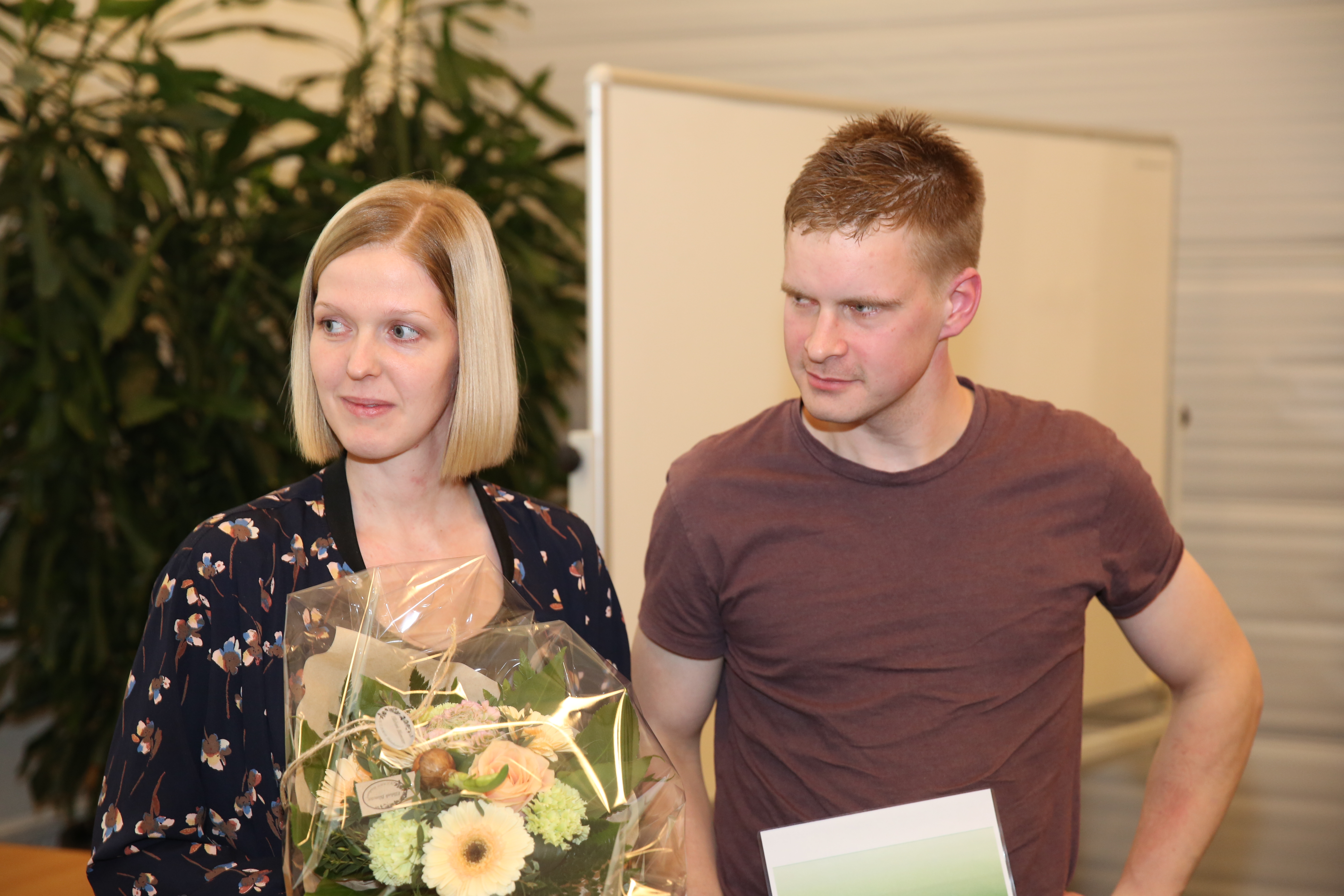 Jens Peter og Majken Mølleskov fik overakt Niels Pedersens Fond-legatet på 30.000 kroner på generalforsamlingen i Familielandbruget VEST-Jylland i aftes. Jens Peter er selv født på en ejendom og driver i dag en ejendom mellem Vorgod og Videbæk. Den er købt i fri handel i foråret 2015. Parret har 100 hektar under plov, hvoraf de 48 er forpagtet. I stalden har de 100 jerseykøer. Parret er for øjeblikket i gang med omlægning til økologi.