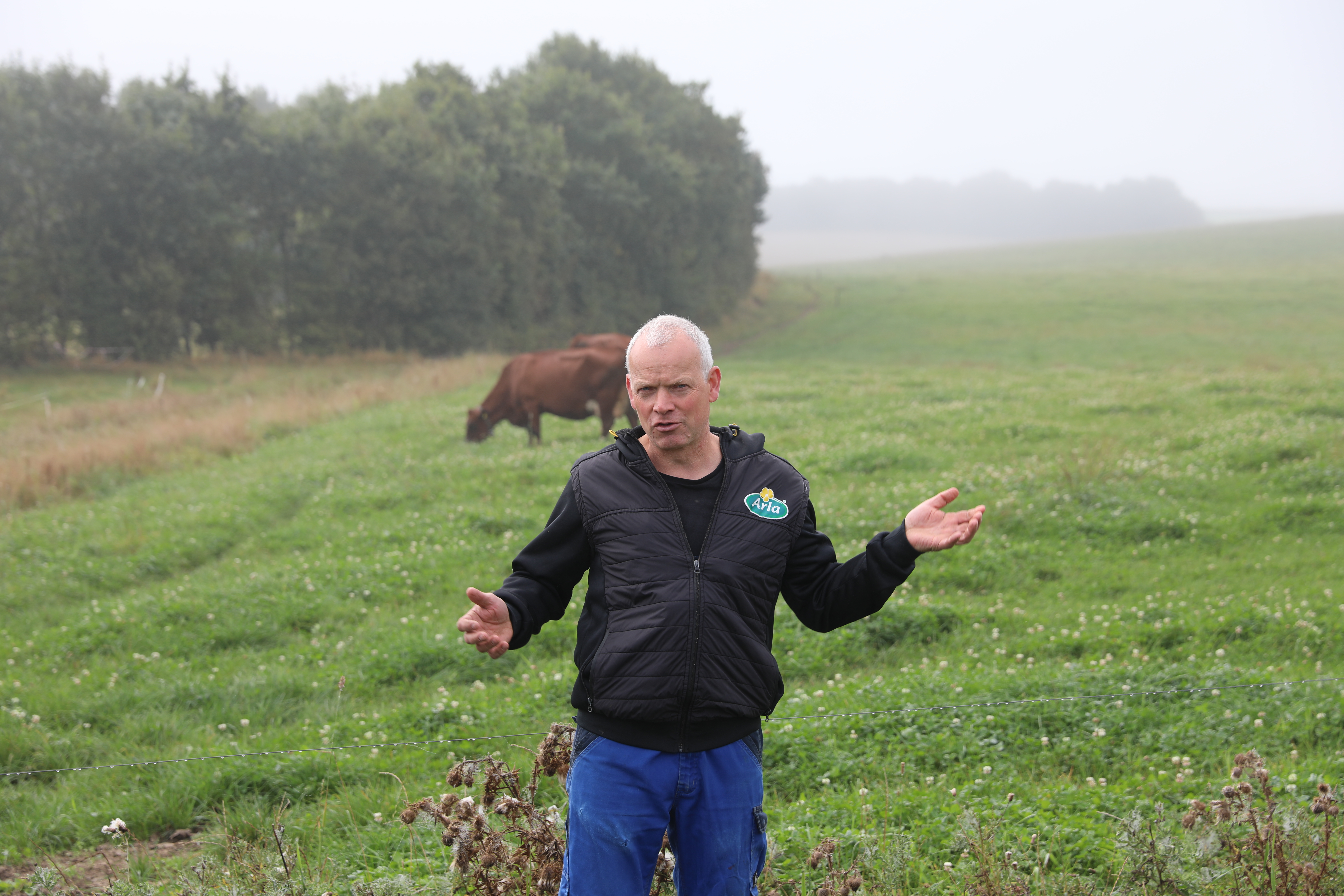 ”Det er et frit system her på gården, hvor køerne kan bevæge sig frit efter behov, og jorden er ret godt egnet til kløvergræs. I hvert fald nogle steder, for der er ret stor variation,” fortæller han og fortsætter: