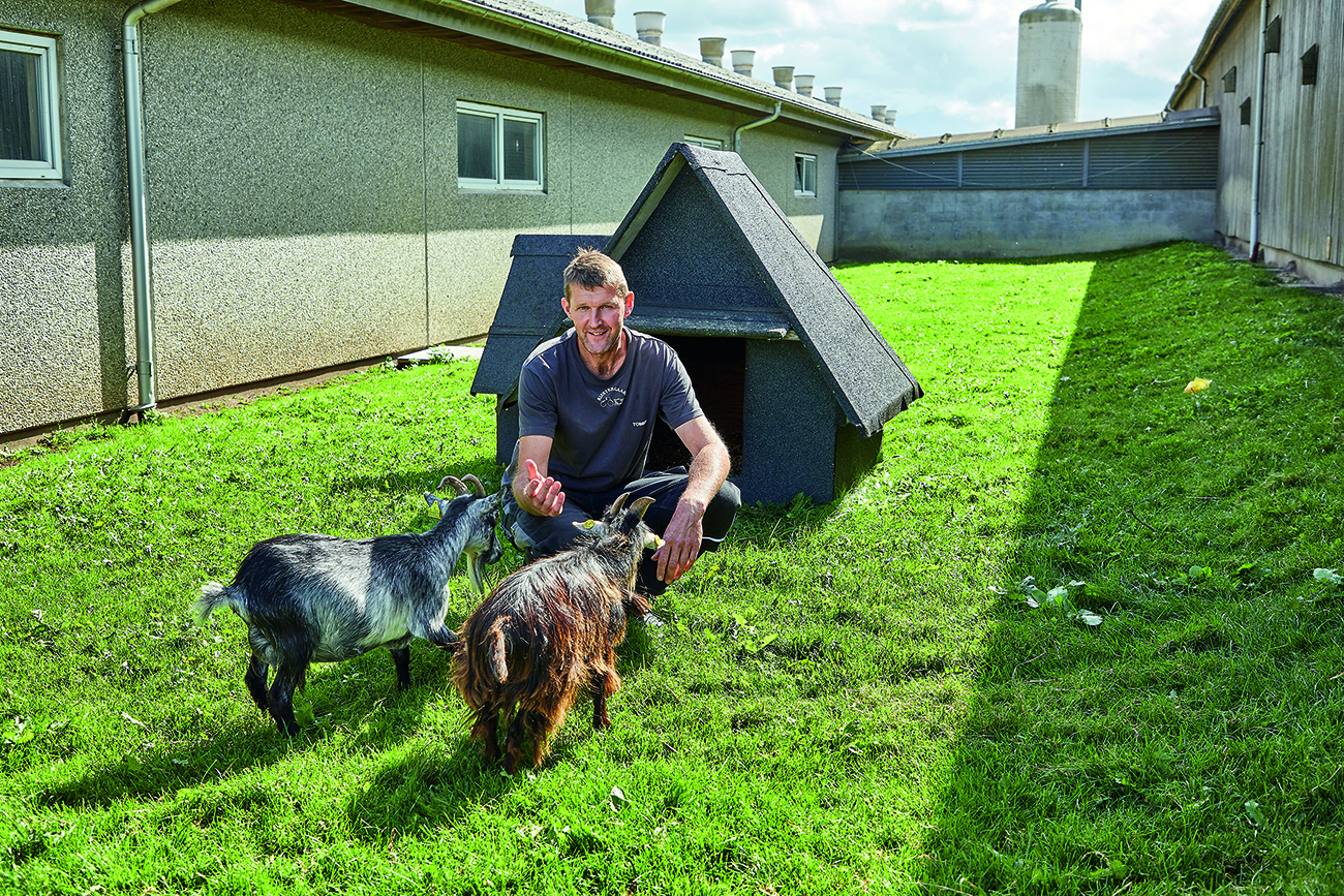 Lige så atypisk er det, at han som svineavler har 18 ha med permanent græs, fordi der også er ammekvæg, slagtekalve, får, geder, heste og æsler på bedriften!