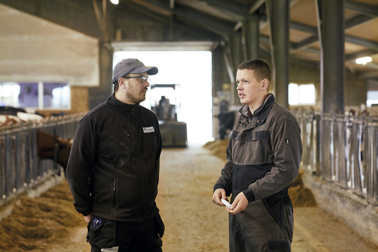Bruno Lyskjær Due (th) hjalp Jesper Arnth med at sænke indholdet af protein i foderet – og det fik ingen konsekvenser.