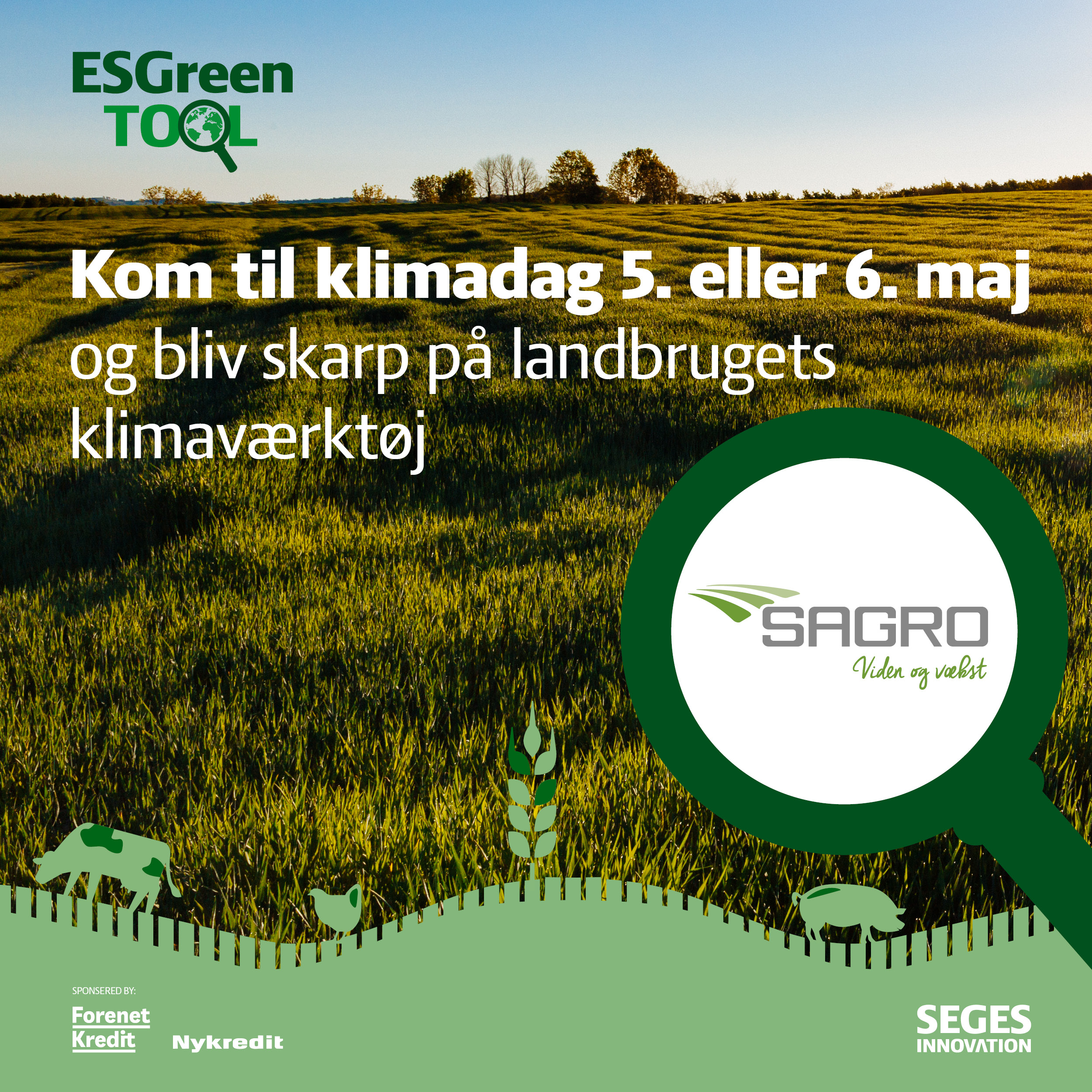 Bag Klimadag står SEGES, SAGRO og SAGROs ejerforeninger, og udover at møde nogle Danmarks fremmeste rådgivere inden for klima og miljø fra SAGRO, kan man også møde eksperter fra SEGES og Nykredit.