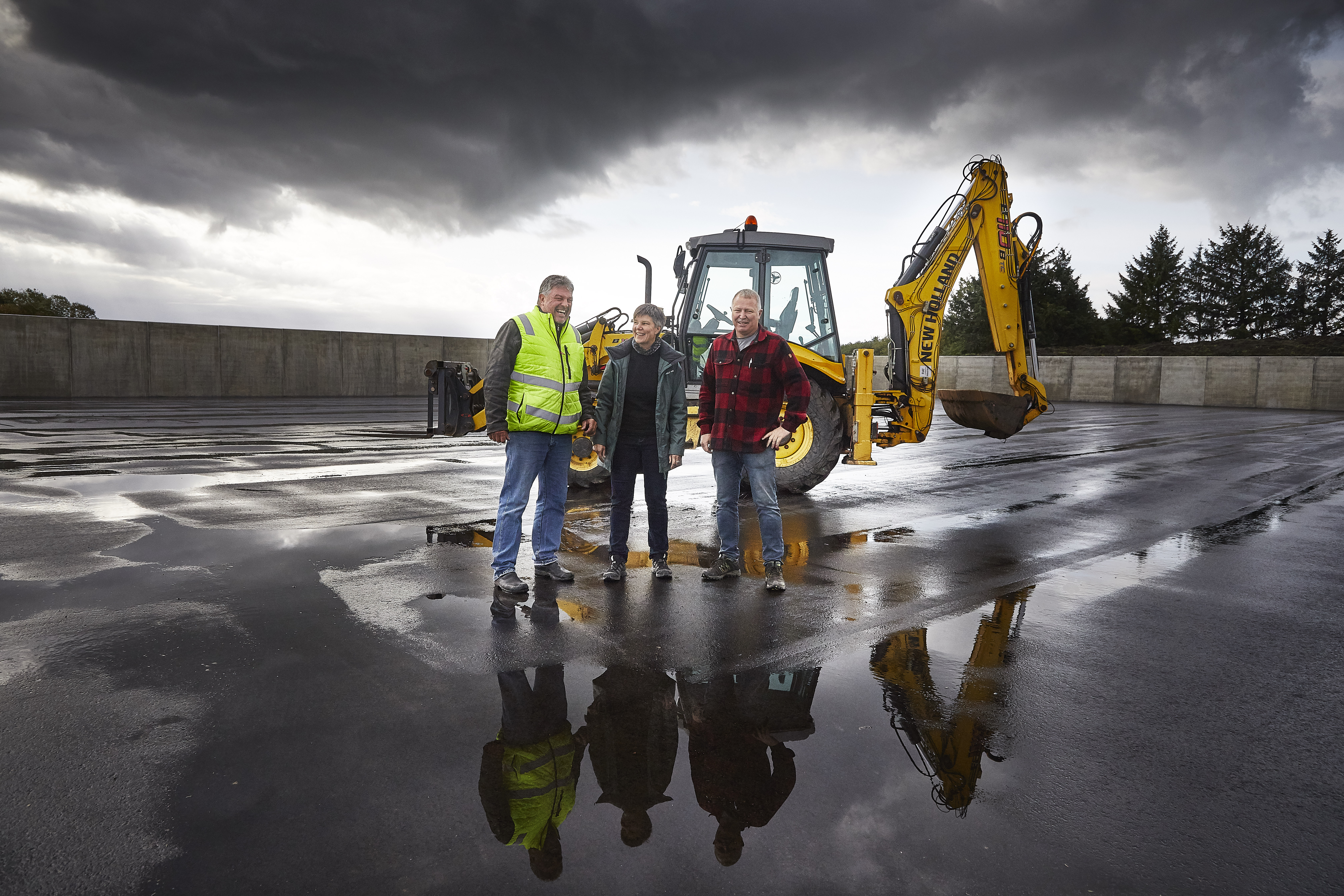 Plansiloerne er klar til at blive fyldt med majs, som er en del af den nødvendige biomasse, der skal bruges, når anlægget tages i brug til foråret. Fra venstre er det Peter Nissen, Bente Rasmussen og John Jensen.