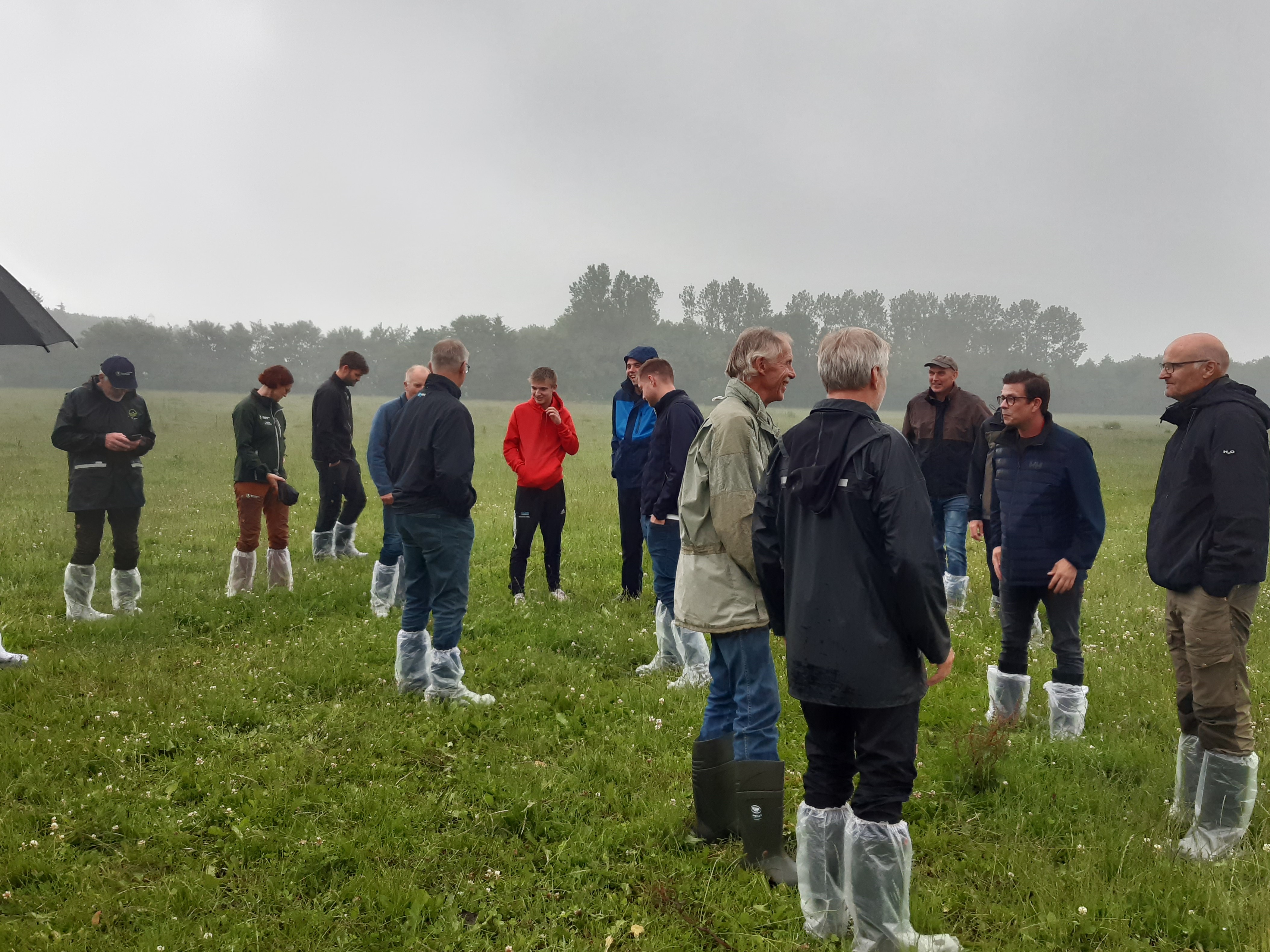 Efter at have været rundt på Rud Bruuns bedrift, gik flokken inden for i tørvejr til kasse og kage. Her gennemgik rådgivere fra ØkologiRådgivning Danmark den foreløbige status for græssæsonen 2023.