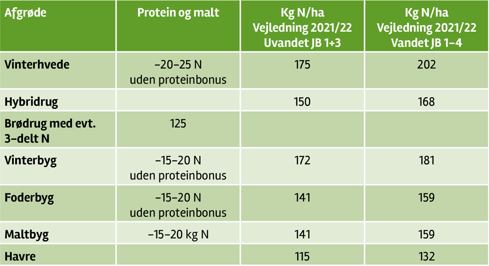 Tabel 3: N-tildeling med og uden proteinbonus