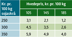 Tabel 4: Prissammenhæng mellem sojaskrå og korn