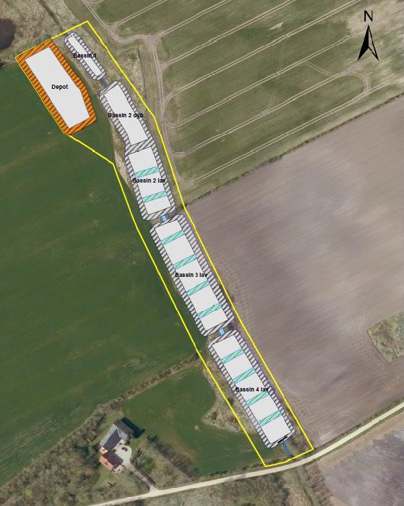 • Ved anlægget er der etableret en jordvold, der fungerer som afvandingsdepot for okkerslam.