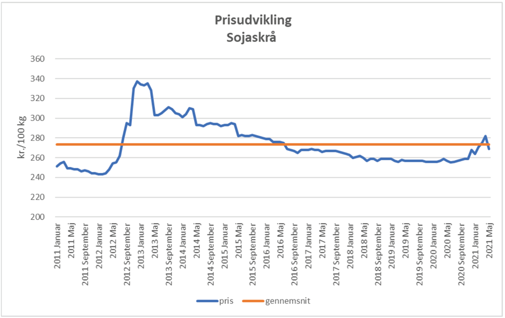 Soja er derfor en vigtig del af foderblandingerne til såvel køer og grise, og prisen på soja har derfor stor bevågenhed. Hertil kommer, at der er stærkt stigende opmærksomhed omkring dyrkningsforholdene. Kan produktionen være bæredygtig? Og kan produktionen være ansvarlig, hvis den indebærer afskovning?