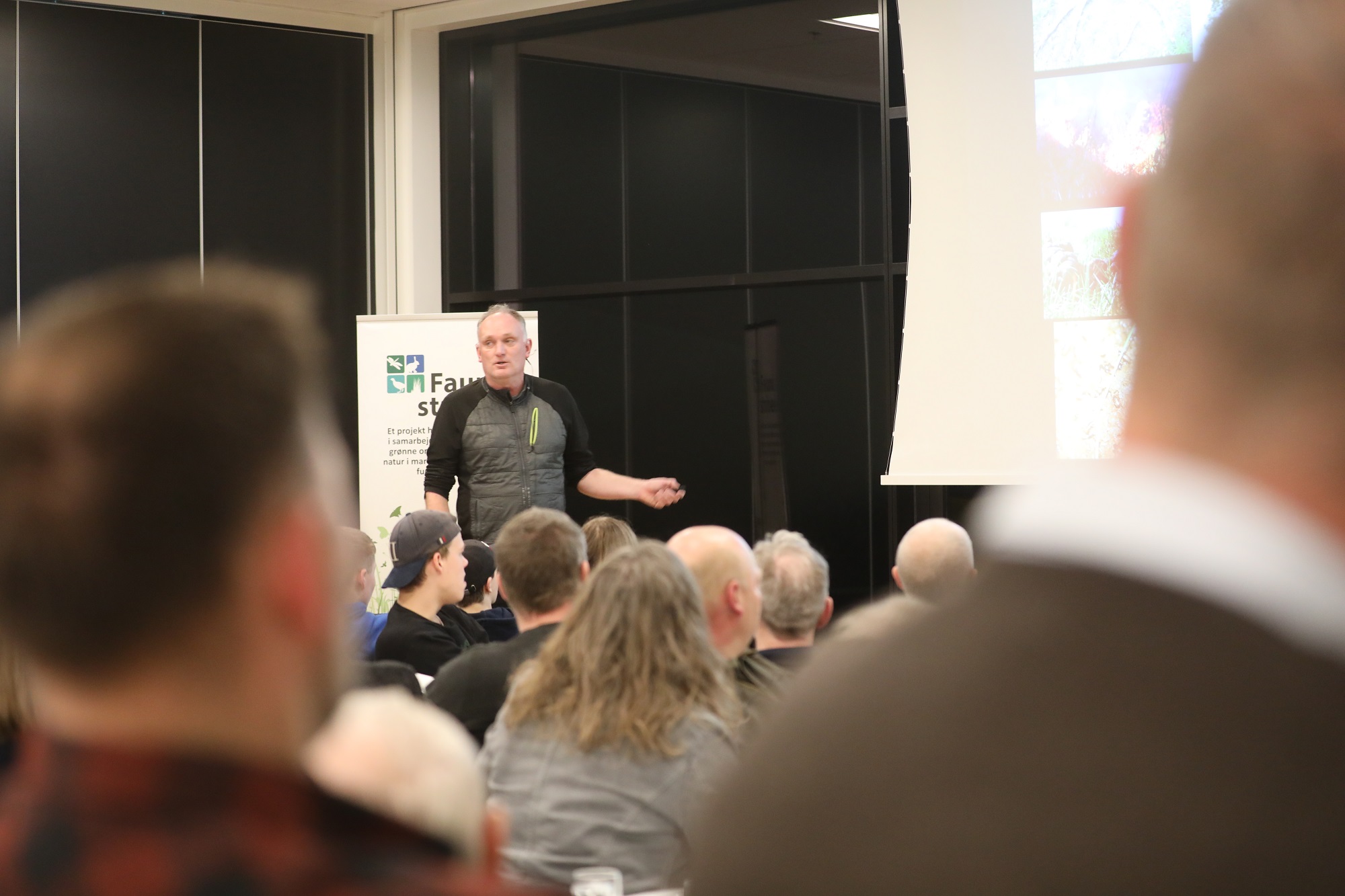 Da Danmarks bedste naturformidler havde fremlagt sine synspunkter, tog SAGROs natur- og vildtrådgiver, Rasmus Filsø Løbner over, for at fortælle om, hvordan kravet om udtagelse af fire procent ikke produktive arealer, bedst kan give mening på bedriftsniveau.