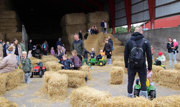 Kjargaarden ved Sunds var lynhurtigt fyldt med liv, da familier i alle aldre strømmede til for at opleve Åbent Landbrug.