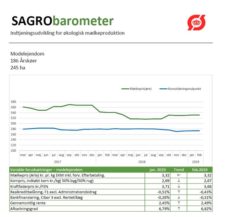 SAGRO lancerer fra i dag et månedligt indtjeningsbarometer, som giver et hurtigt overblik over udviklingen i indtjeningen for den økologiske mælkeproduktion. Barometeret giver den enkelte landmand muligheden for at sammenligne tallene fra egen bedrift med en model-ejendom, hvor en række variable omkostninger måles op mod mælkeprisen.