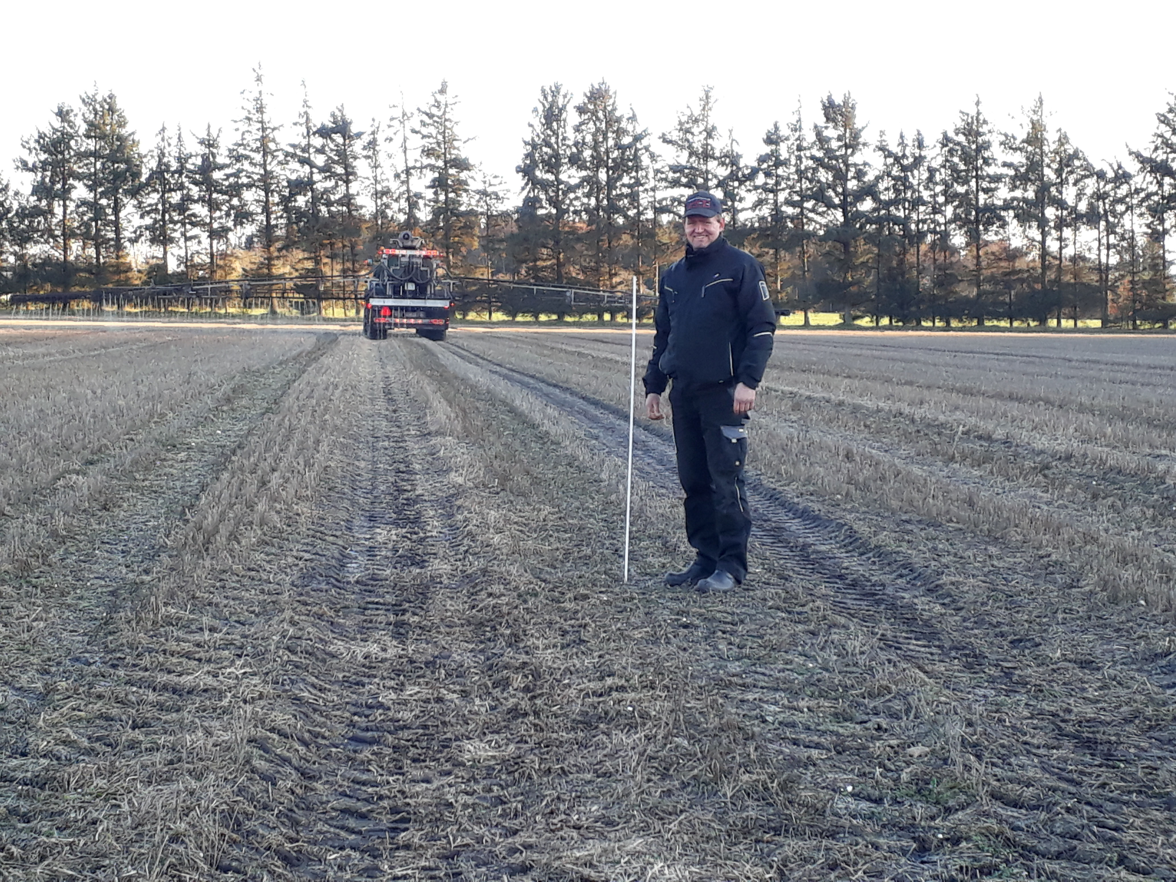 Kartoffelavler Leo Nielsen har givet mulighed for at SAGRO kan udføre et forsøg med at placere protamylasse med GPS. Forventningen er, at det både kan give billigere gødning og et højere stivelsesindhold. Billedet er fra 12. april.