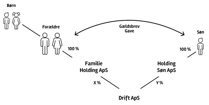 andel til arvtageren og gradvist forøge den. I selskabsform sker overdragelsen ved at overdrage kapitalandele, og det er forholdsvist enkelt.