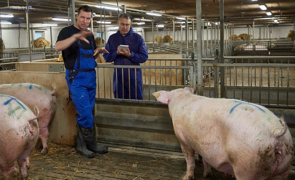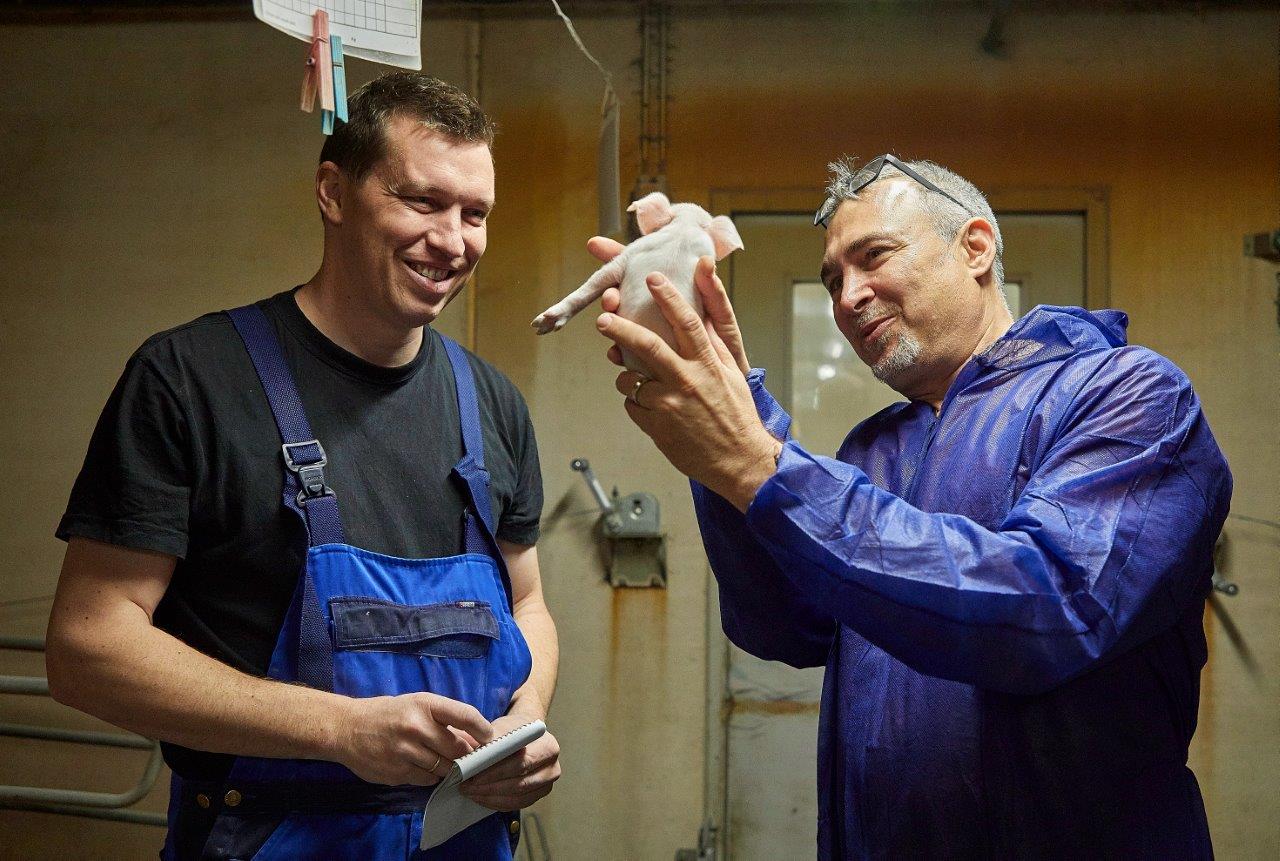 New York Times-journalisten Andrew Jacobs (th) har blandt andet besøgt to danske svineproducenter, forskere, dyrlæger og Statens Seruminstitut for at have baggrundsmateriale til den rosende artikel om, hvordan antibiotikaforbruget i dansk svineproduktion er skåret drastisk ned.